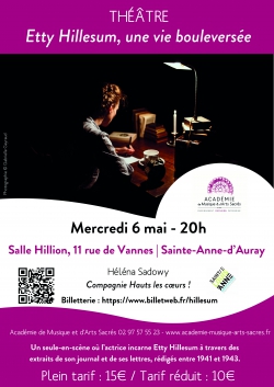 Dans le cadre d’un partenariat entre l’Académie de Musique et d’Arts Sacrés et le Groupe scolaire Sainte-Anne-Saint-Louis, un spectacle de théâtre est proposé autour du best-seller d’Etty Hillesum à l’occasion de la commémoration de la fin de la guerre de 1945 célébrée le 8 mai.